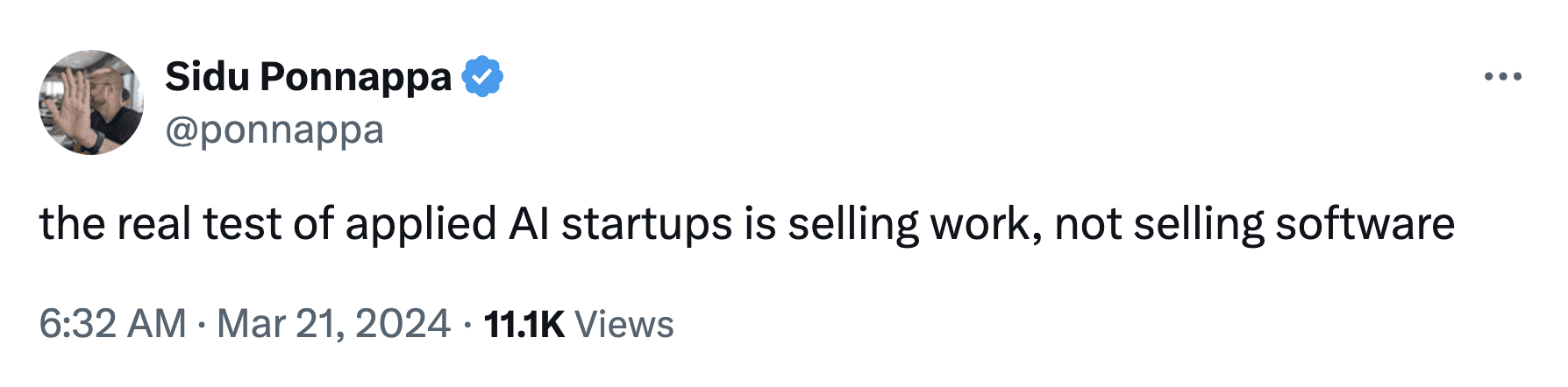The future of AI isn’t about who can train the biggest, baddest model. It’s about who can take these models, identify excellent UX opportunities around them, and DELIVER WORK.