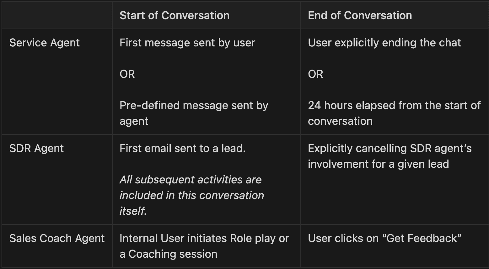 For example, if your SDR agent sends 40 emails to a single lead, it’s still ONE conversation. Or if your service agent engages with the customer over 20 messages in 2 hours? Still ONE conversation.